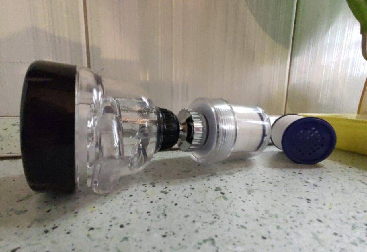 Насадка-аэратор на кран, неважно, в душе или на кухне, выполнит роль фильтра и одновременно защитит от брызг