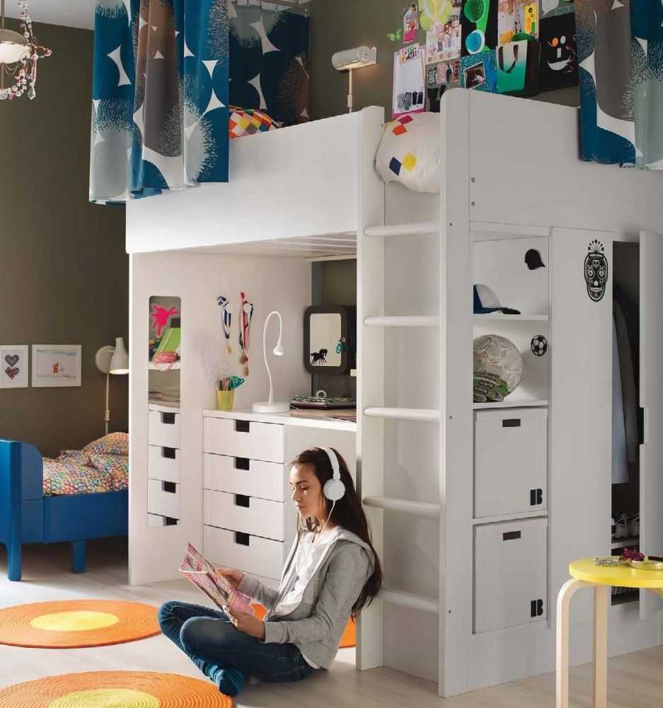 Кровать-чердак. В условиях городской тесноты вариант просто незаменим. Идея, дизайн точно помогут предмету выделиться на фоне типичной обстановки.