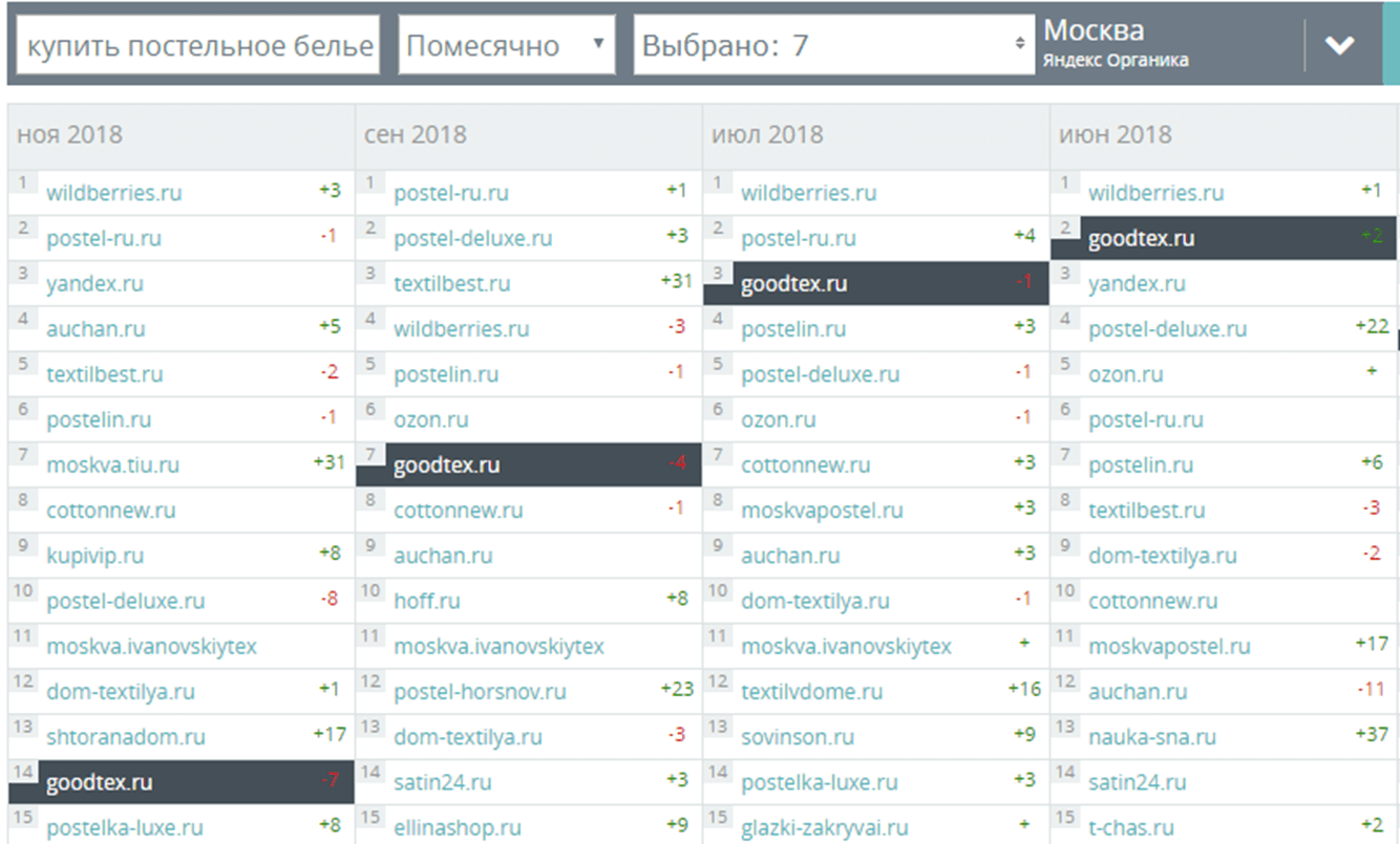 Обратите внимание на запрос «купить постельное белье» на скриншоте – сайт был на втором месте и скатился на 14-е. Какое количество трафика он потерял, можно только догадываться. На это влияют несколько факторов