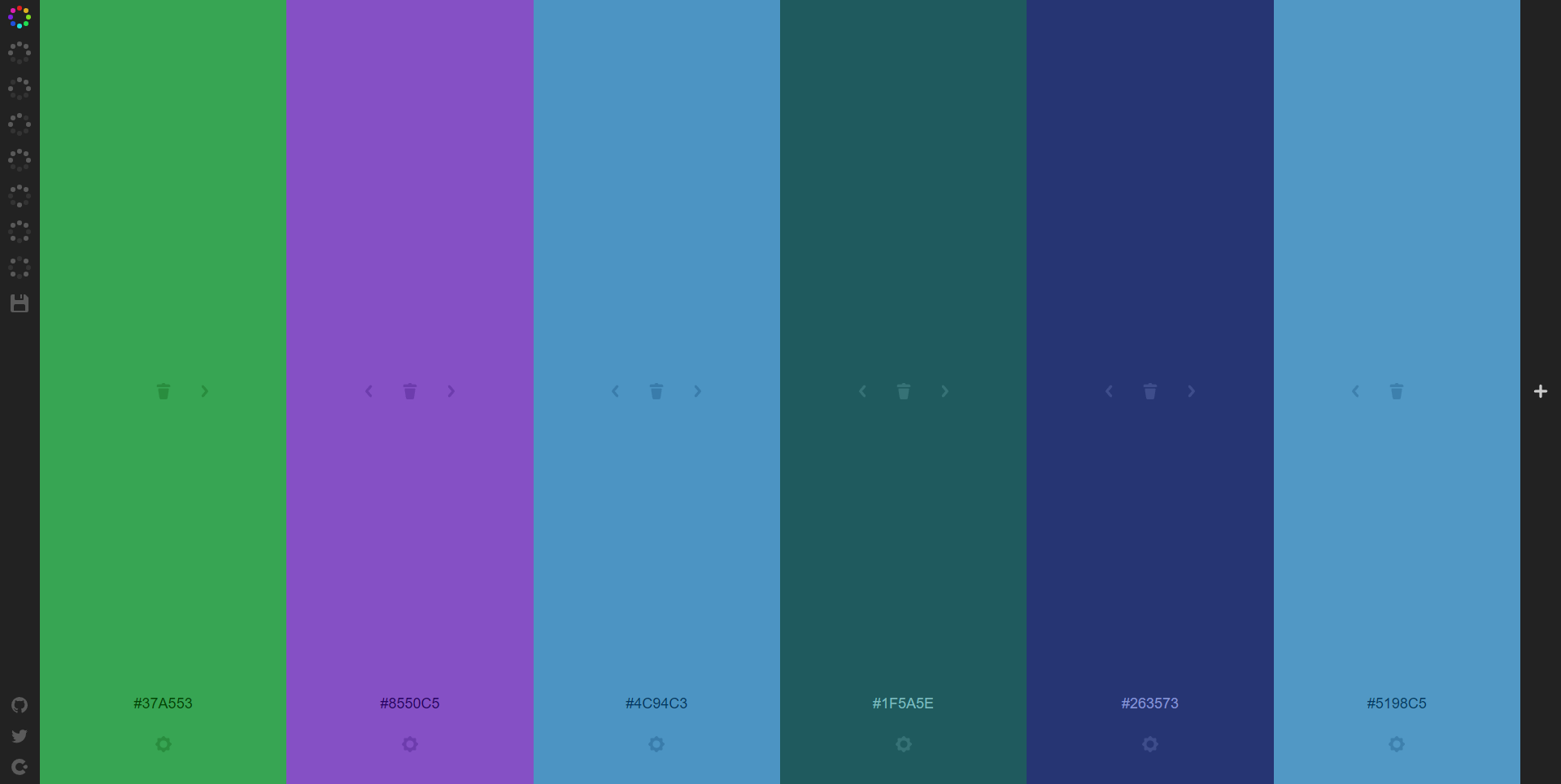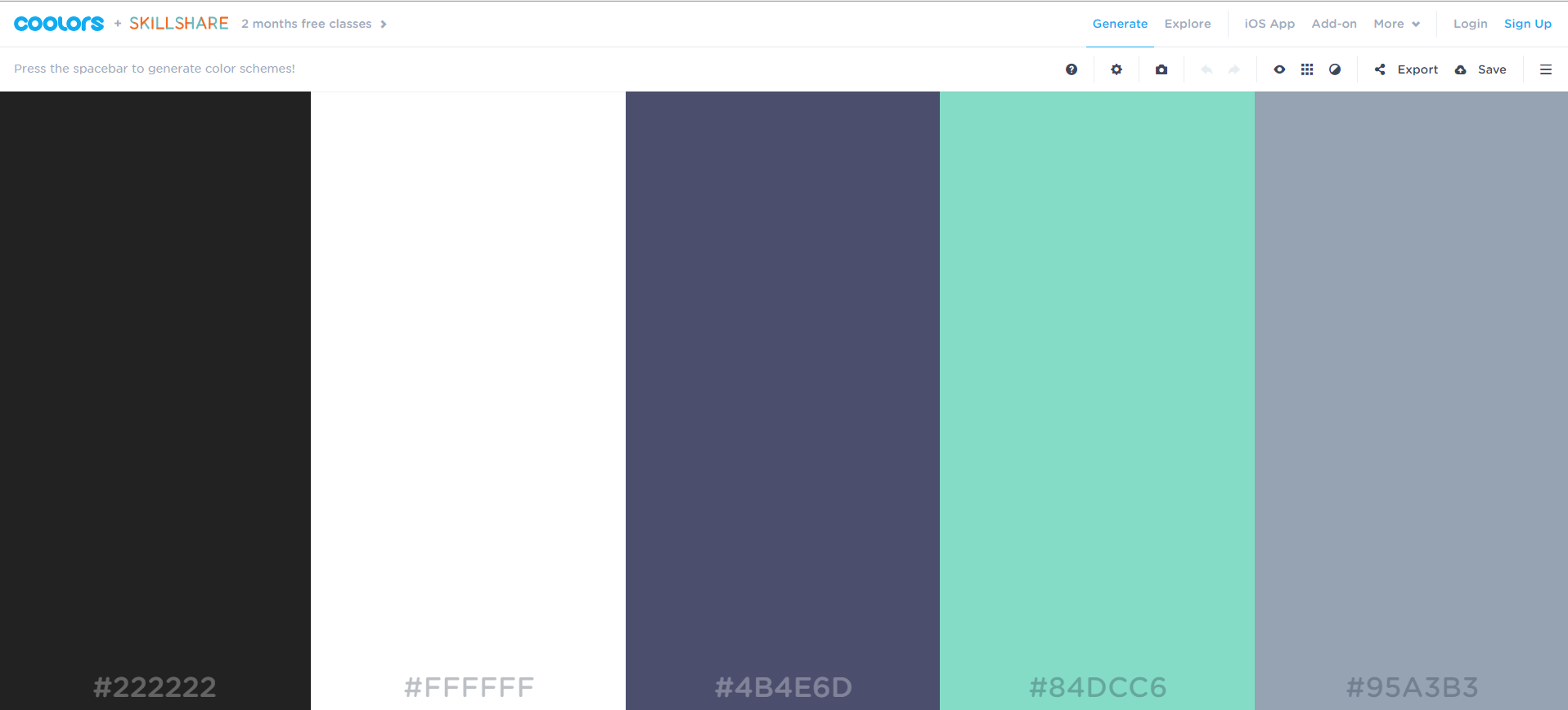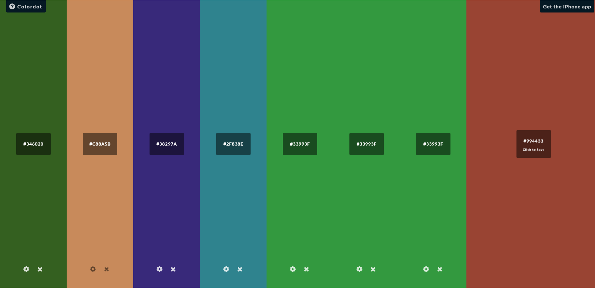 Colors — бесплатный генератор цветовой палитры, за считанные секунды создает хорошие варианты. Если предложенная системой подборка вам не нравится, то можно сгенерировать новую или задать определенные цвета и заменить какие-то оттенки.