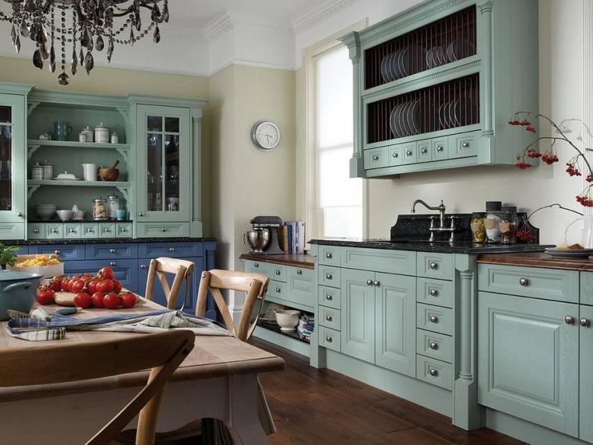 В этом вопросе специалисты чаще всего приходят к такому решению: если стены выполнены в ярких, вызывающих тонах, то кухонная мебель должна быть исполнена в спокойно-постельных красках. И наоборот.
