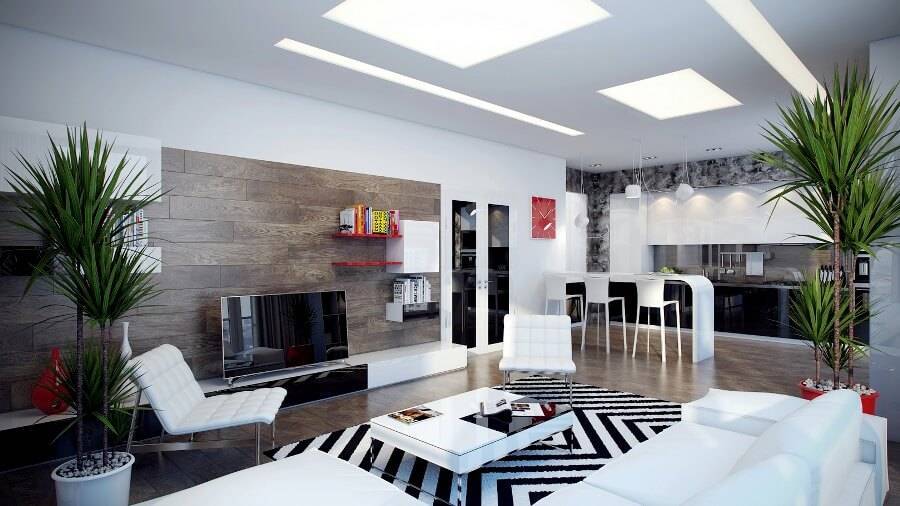 В основе такого дизайнерского решения будут лежать оттенки, находящиеся в цветовом круге напротив друг друга. Чтобы контрастность не раздражала, она обычно обыгрывается с помощью дополнения нейтральными оттенками: серым, черным, белым. Соотношение контрастных цветов в интерьере должно быть следующим: светлый 50%, более яркий – 30%, яркий 20%.