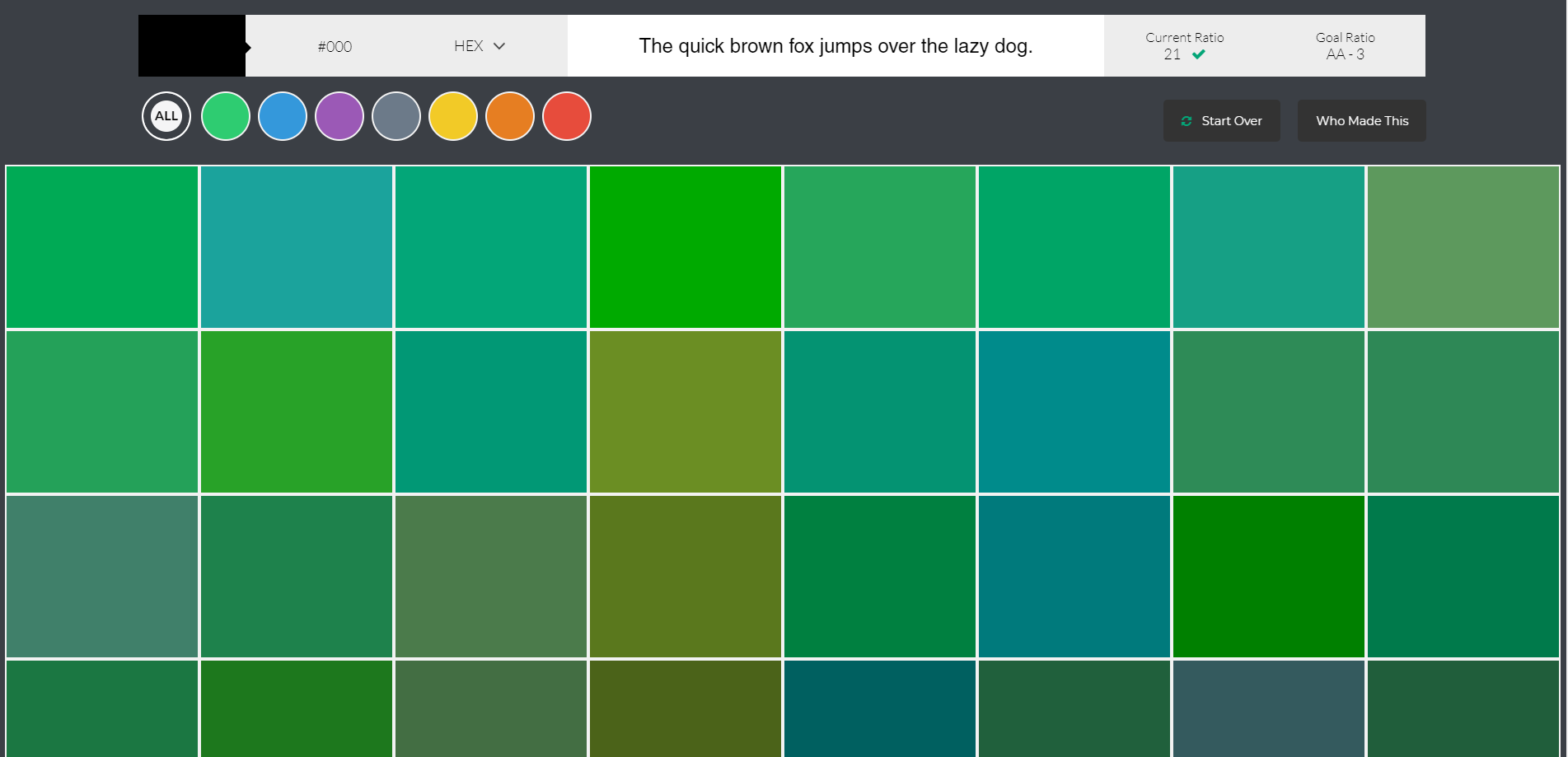 Color Safe — этот инструмент понравится тем, кому небезразлична аббревиатура WCAG (Руководство по обеспечению доступности веб-контента, в которое входит множество рекомендаций, помогающих сделать информацию на сайте доступной разным пользователям — например, когда нужно учесть особенности восприятия слабовидящих людей). В алгоритм подборщика встроены необходимые параметры, что удобно при работе над сайтами.
