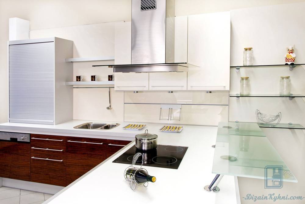 На кухне не помешает и место для журналов с интересными рецептами и советами домохозяйкам, различных сувениров и красивых кухонных приборов в виде небольшой настенной открытой полочки.