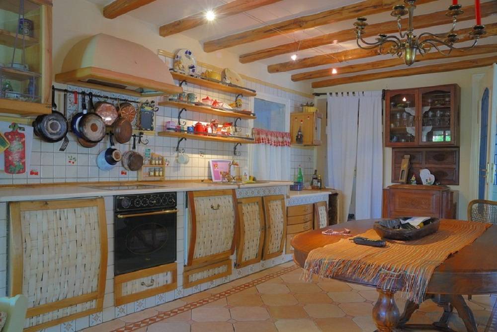 Для кухонной комнаты в деревенском стиле их можно заменить полочками открытого типа. Правда, имейте в виду, что выставленная там посуда должна быть прекрасной и в прекрасном состоянии — а это означает, уборку необходимо проводить постоянно.