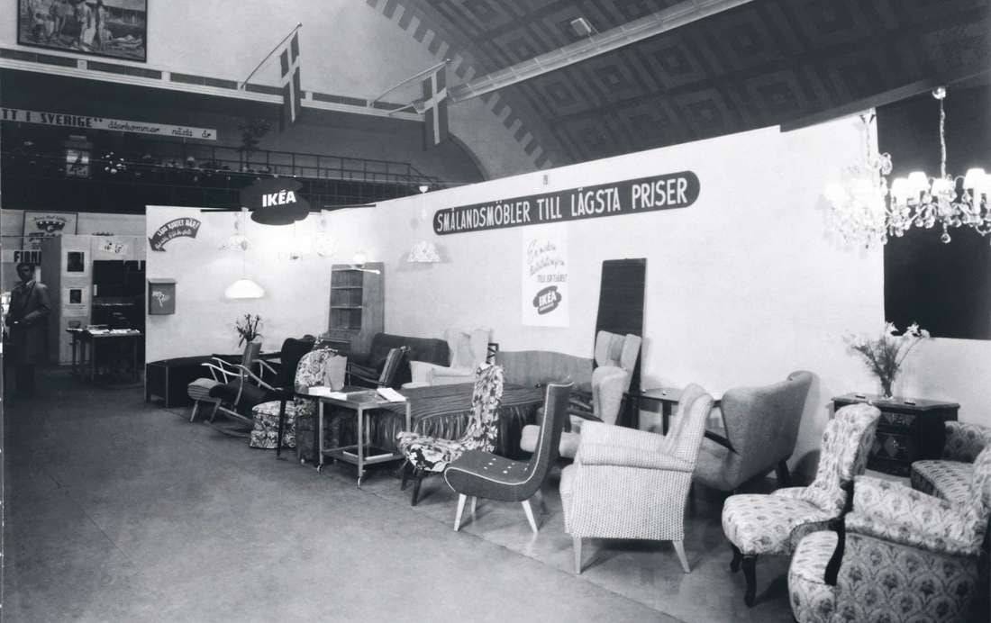 - 1950 год: концепция низких цен обеспечила развитие и рост и создала опасность для конкурентов, которые стараются помешать ей участвовать в выставках, убеждая поставщиков не сотрудничать с компанией. В ответ на это IKEА находит поставщиков за рубежом. Спрос на мебель по доступной цене продолжает расти. В это же время издается первый каталог мебели.