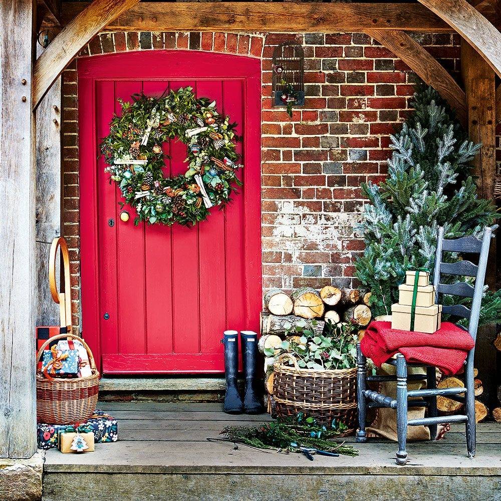 При одном только взгляде на украшенную входную дверь и крыльцо загородного дома создаётся ощущение, что праздник уже близко. Поэтому вполне оправданно в первую очередь украсить входную дверь, прихожую, террасу, веранду или крыльцо, иначе говоря, вход в дом.