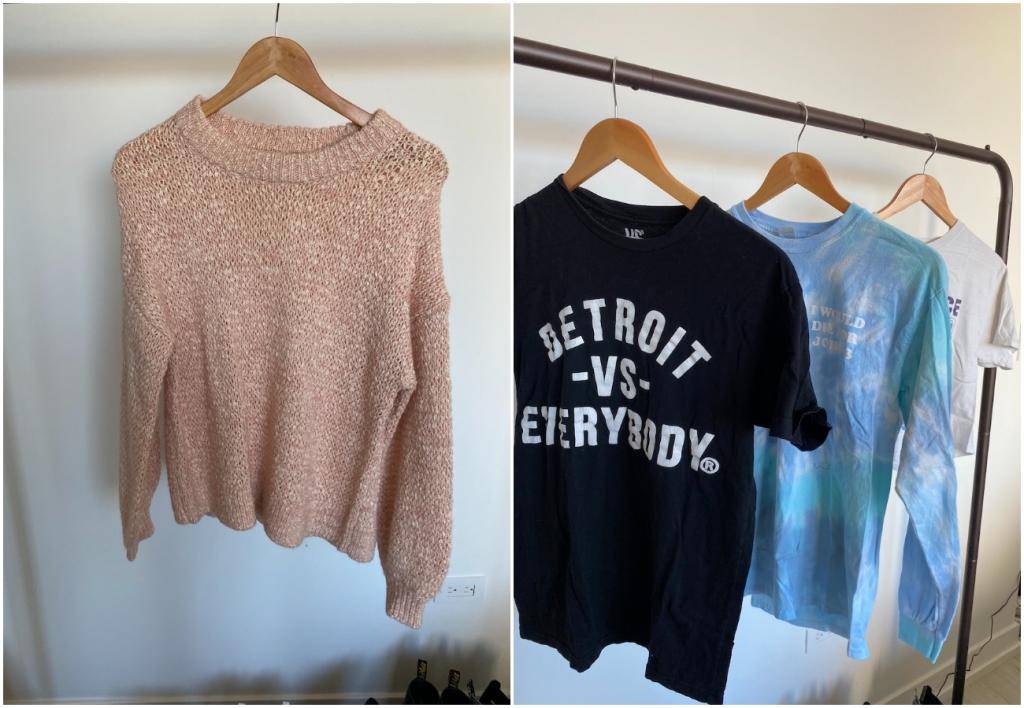 Однажды я пришла к выводу, что в моем гардеробе все вещи одинаковых цветов. Тогда я решила выходить из зоны комфорта и покупать вещи ярких цветов и с красочными принтами. На самом деле качественная футболка с рисунком — это идеальный базовый предмет одежды, который можно надеть под блейзер или кожаную куртку. Но в моем гардеробе они так и не прижились. Что касается розового свитера, это был своеобразный эксперимент, который не увенчался успехом.