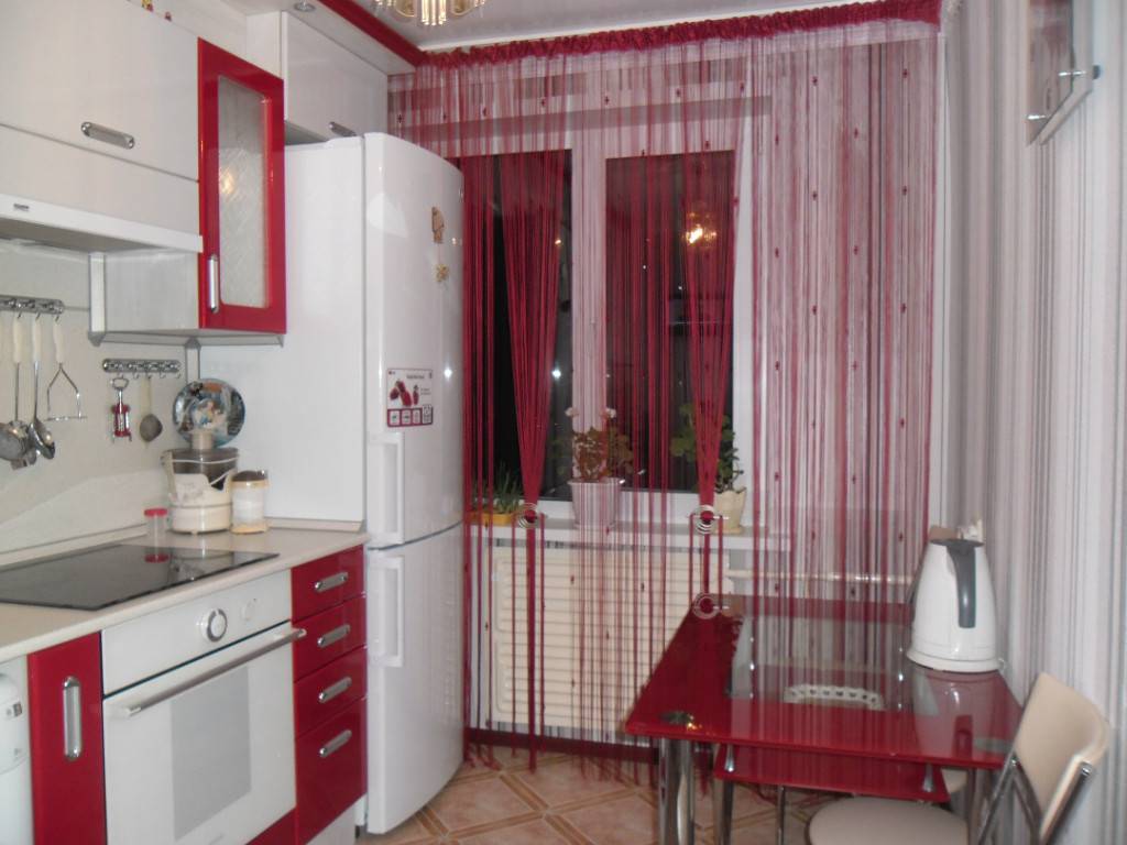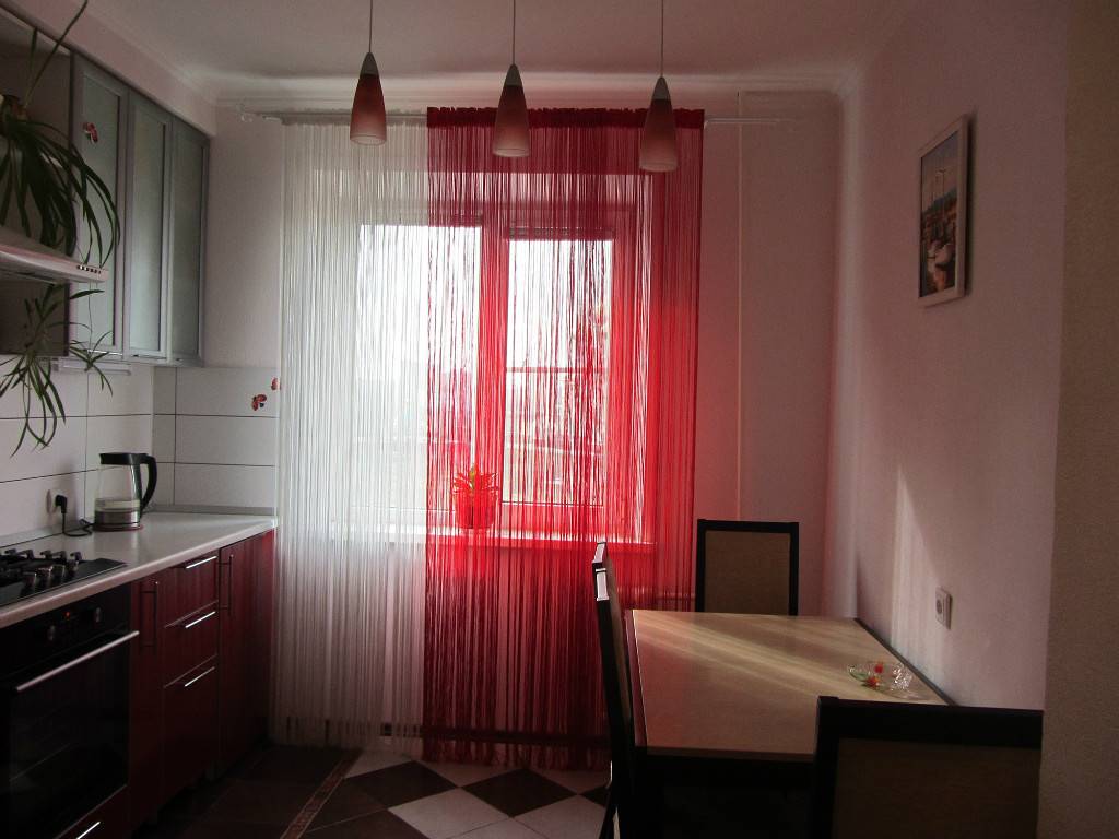 Не подойдут такие шторы и для маленького помещения с недостаточным естественным освещением — в таких случаях стоит использовать белый текстиль. Если же дизайн вполне позволяет выбирать шторы красного цвета, в тон к ним также необходимо подобрать скатерть, полотенца, мягкие сиденья стульев, некоторые декоративные элементы.
