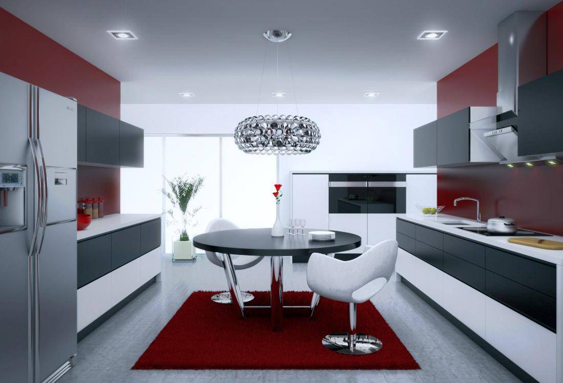 Планируя красную кухню, важно учитывать все положительные и негативные аспекты, ведь сильное обилие цвета может привести к утомляемости, повысить эмоциональный фон. Чтобы этого избежать, нужно найти гармоничный цветовой баланс, правильно выбрать пропорциональное соотношение основного тона с другими красками
