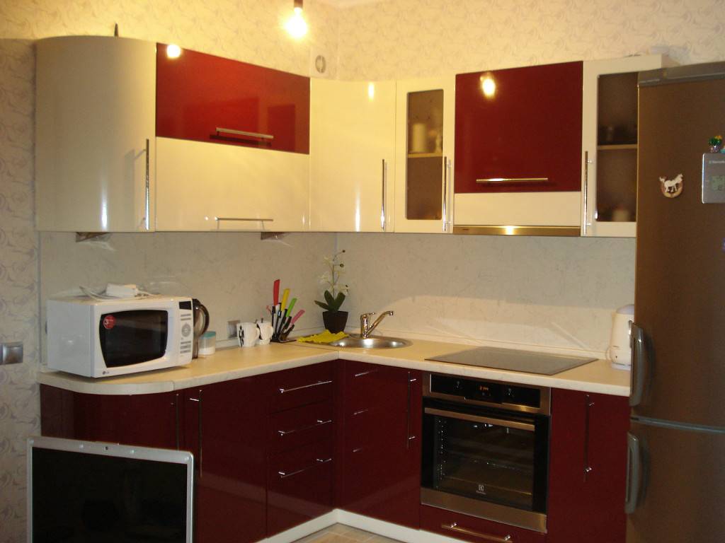 Красные гарнитуры кухонь могут быть однотонными или сформированными из двух-трёх оттенков. Современные конфигурации гарнитуров позволяют сочетать тона разными способами – по горизонтали, вертикали, в шахматном порядке. Брать идеи можно с представленных фото красных кухонь.