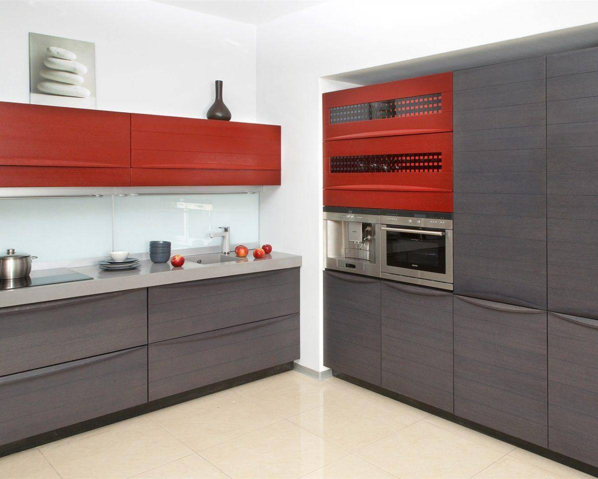 В красной кухне важно правильно подобрать мебель и технику. Плиту, холодильник и прочую бытовую технику можно встроить в наушники или поставить отдельно