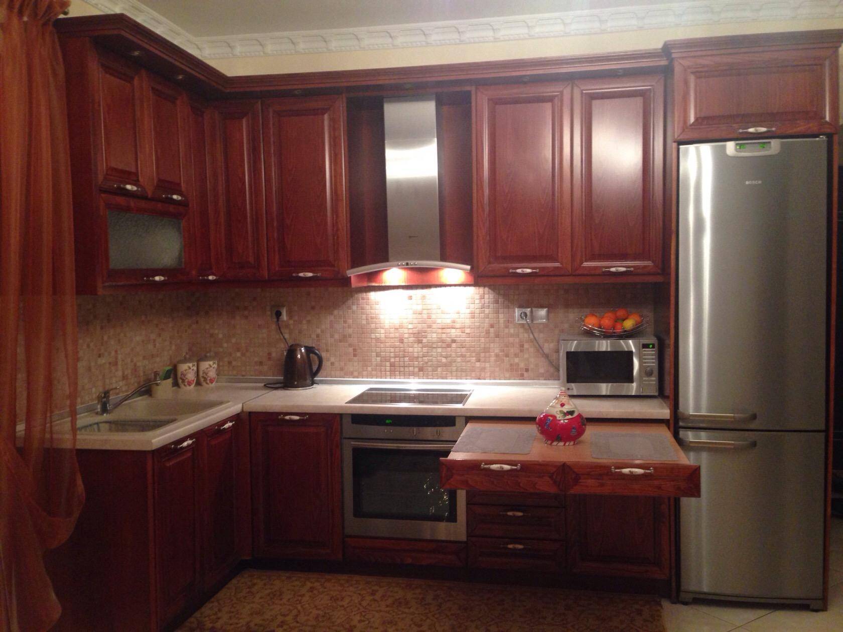 Деревянные резные фасады, окрашенные в матовые бордовые оттенки, приближенные к коричневому цвету, будут выглядеть роскошно и благородно. Дополнить их можно позолоченной фурнитурой и резными элементами.