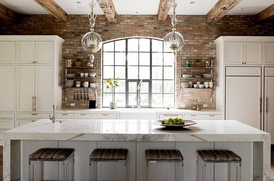 Кирпичная облицовка на кухне – это смелое дизайнерское решение, позволяющее использовать практичный старинный материал для получения изысканного и непохожего на другие интерьера.