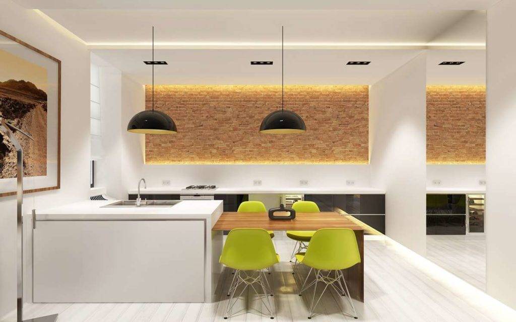 С помощью разнообразной цветовой гаммы гипсового кирпича можно зонировать пространство, создавать необходимое освещение. Например, стена из декоративного белого кирпича создаст ощущение простора. Из темного, напротив, сделает помещение меньше. Таким образом, можно даже скорректировать форму помещения, например, узкой и вытянутой кухне придать вид более правильного квадрата, сделав одну из меньших стен темной.