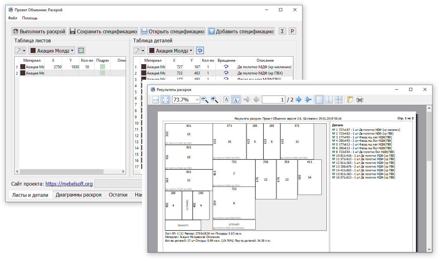 Программа «Объемник – мебельное предприятие»