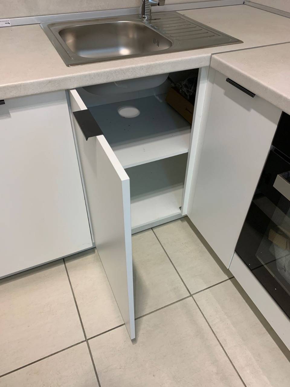 Совет. При возможном варианте угла без мойки, задействуйте этот вместительный модуль при помощи выдвижных систем (шуфляд). Для этого хорошо подойдет фурнитура Blum.