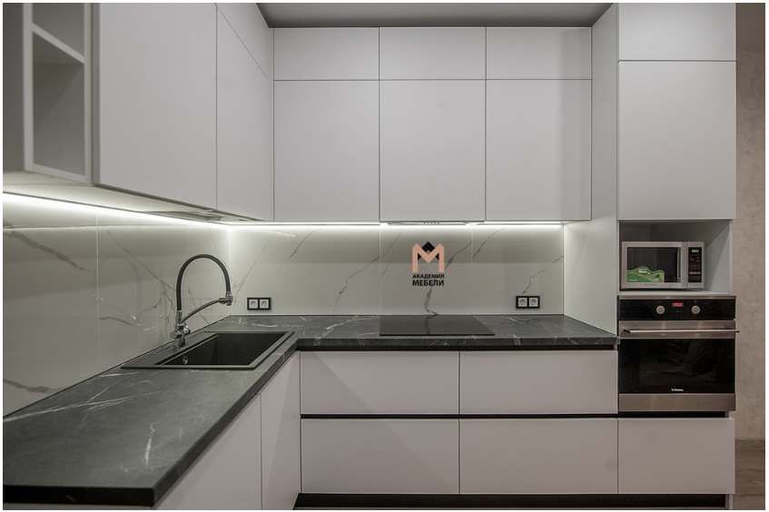 Гарнитуры с нишами для техники позволяют более эффективно использовать угловое пространство на угловой кухне. Они позволяют установить технику, такую как духовой шкаф, микроволновая печь или посудомоечная машина, в специальных нишах, что позволяет оптимизировать использование пространства и создать более функциональную кухню.