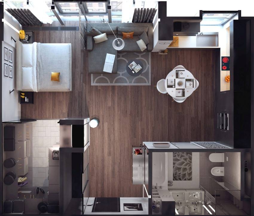 Перед тем как приступить к планировке квартиры-студии, следует уяснить одно главное правило: максимум свободного пространства, минимум предметов и вещей. Вам придется избавиться от части вещей, которые не впишутся в общую концепцию нового дизайна.