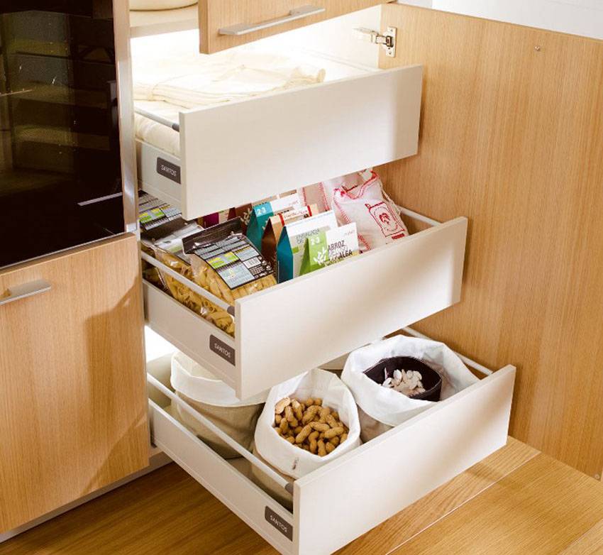 Не бойтесь экспериментировать с мебелью разной глубины. Мебель стандартного размера вмещает в себя основную бытовую технику (раковину, духовку, плиту, вытяжку, холодильник и посудомоечную машину), а мебель меньшей глубины идеально подойдет для хранения посуды и продуктов, не занимая слишком много места.