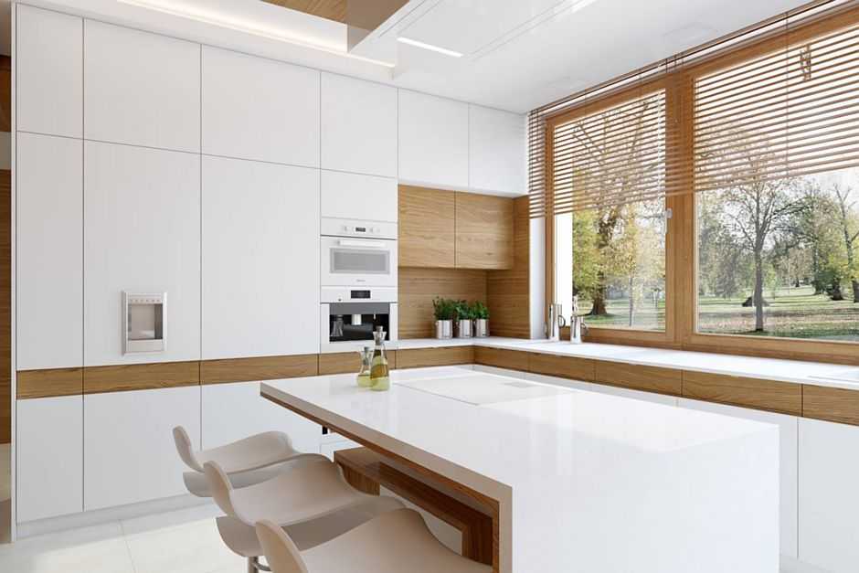 Для украшения окна лучше выбрать тонкий тюль, рулонные шторы или жалюзи. Минимализм требует много света в комнате. Поэтому, если окно на кухне маленькое, лучше остановиться на прозрачных тканях.