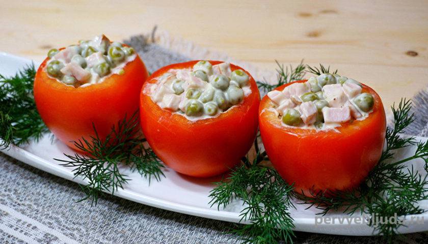 Оливье в помидорах, или закуска из помидор фаршированных оливье
