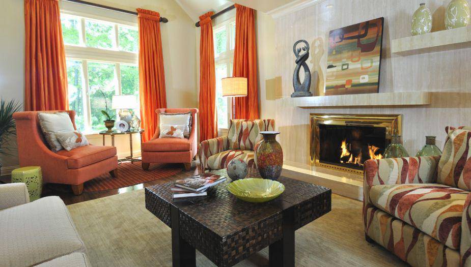 Вы можете поэкспериментировать с цветами тканей, совмещая осеннюю палитру с нейтральными оттенками как, например, бежевые и серые тона. «Осенняя» цветовая гамма— это цвета природы: цвет опавших листьев, дерева, коры, спелых овощей и фруктов. Поэтому смело добавляйте эти оттенки в интерьер. А добавив немного бархата в интерьер, Вы точно получите осеннюю сказку у себя дома.