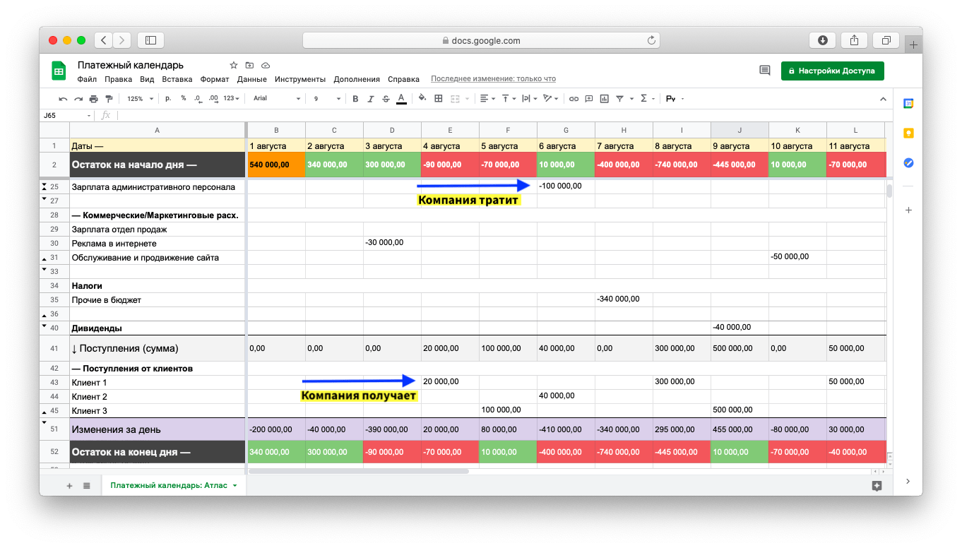 Как избавиться. Держать платежи под контролем поможет платежный календарь — это такая табличка, в которой записано: кому, сколько и когда должна платить компания и кто, сколько и когда платит ей. Выглядит так: