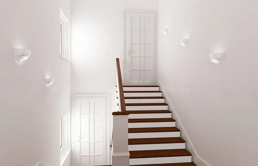Оттенок конструкции только в светлых тонах. Темными могут оставаться лишь самые габаритные колоны снизу и сверху лестничного пролета.