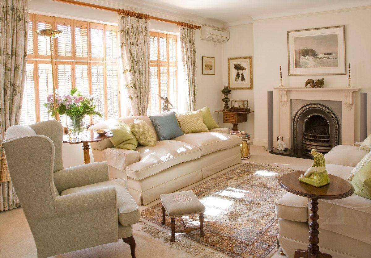 Сельский английский стиль или «коттедж» является традиционным, идиллическим и романтичным. Интерьеры светлые и дружелюбные. В них преобладают деревянные элементы, выполненные из кожи или различных видов ткани. На стенах могут быть картины, изображающие природу. Вазы с цветами также являются обязательными. Декоративные подушки можно разместить на креслах. Основным элементом композиции является камин.