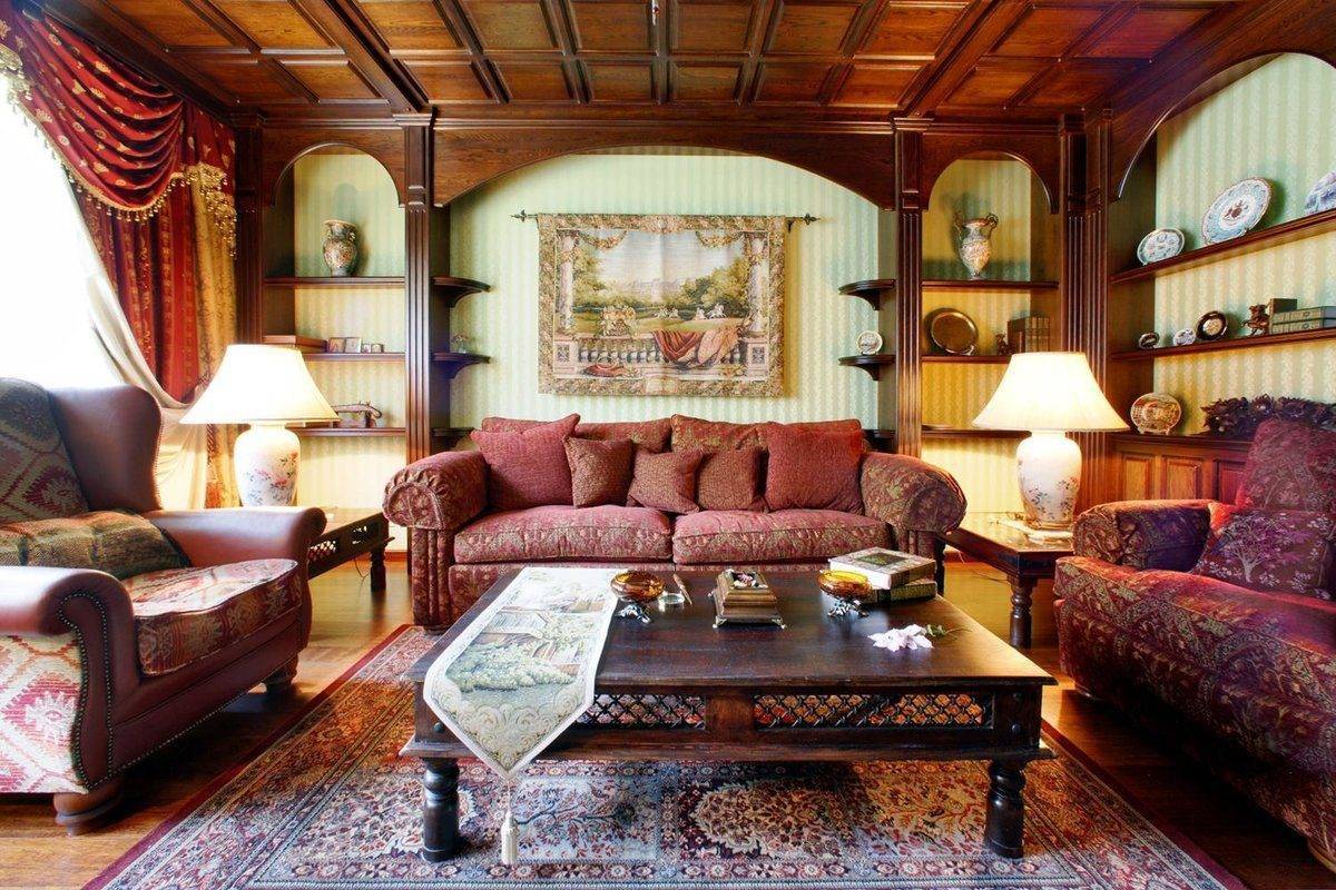 В гостиной, которая оформлена в английском стиле, большую роль играет сочетание старых вещей, чаще всего сувениров и антикварных предметов, с современными. Это может быть даже плазменный телевизор, расположенный рядом со старомодной вазой. Благодаря этой процедуре в гостиной появится дружеская и теплая атмосфера, что дополнительно способствует расслаблению. Английский стиль дает много возможностей для маневра, но не забывайте переусердствовать с количеством предметов.