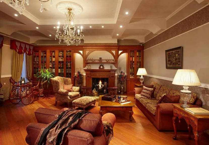 Английский стиль практически не даёт «простора фантазии» при отделке стен, потолка и пола.