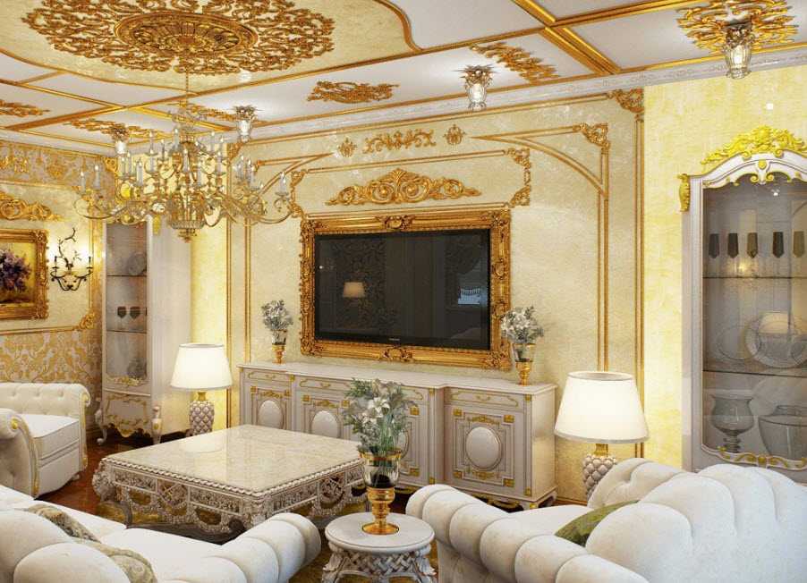 Что бы придать этому стилю присущей ему роскоши нужно помнить чем больше золота и элементов из золота используется в дизайне тем больше раскрывается его суть.