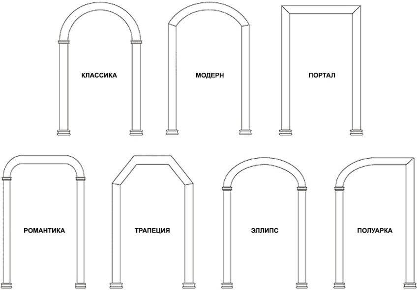 - Классическая дуга или полудуга, опирающаяся на боковые стойки, зачастую оформленные в виде колонн или декоративных опор;