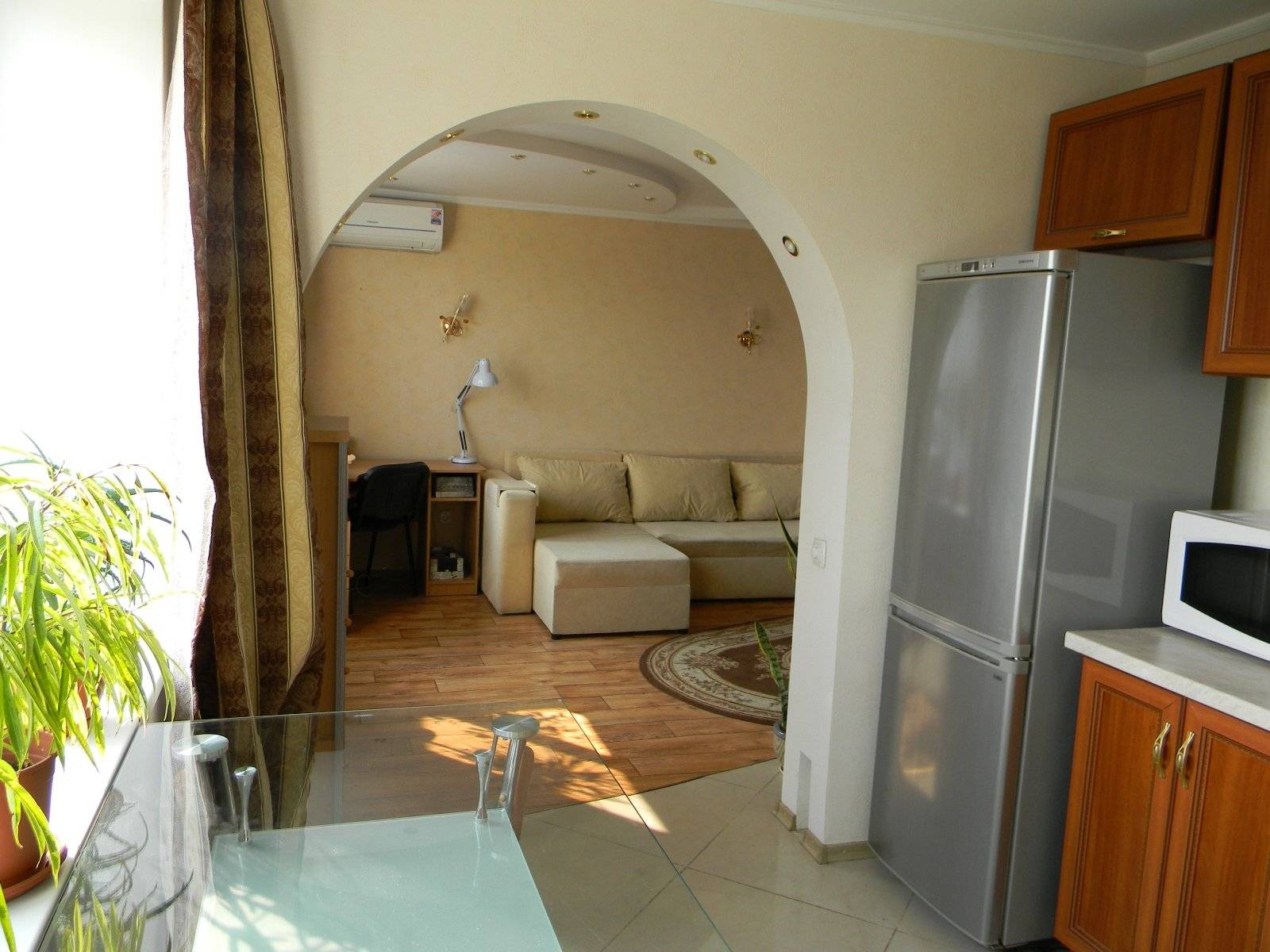 Обычную распашную дверь следует заменить на раздвижную конструкцию, или же оборудовать на ее месте большую арку. Так помещение визуально станет просторнее и светлее.