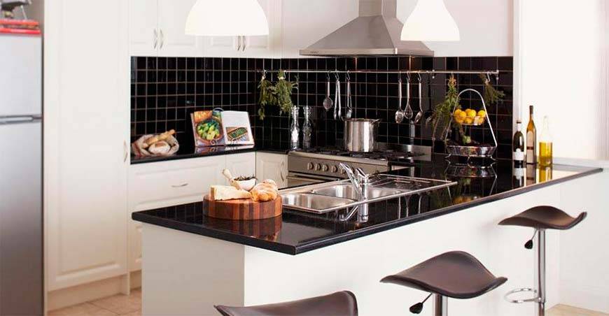 Черный цвет может показаться не самым логичным выбором для маленькой кухни. Но на самом деле это сильный инструмент в руках опытных дизайнеров, который позволяет до неузнаваемости изменить помещение. Одних только контрастных вертикальных или горизонтальных линий в отделке хватает, чтобы зрительно раздвинуть стены и потолок. А стильная черная столешница, мойка или техника сразу делают интерьер элегантнее.
