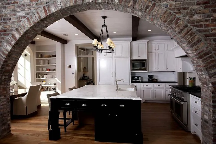 Самый надежный и долговечный вариант – каменная (кирпичная) арка, но при этом он и самый дорогостоящий, требующий высокого профессионального мастерства. Кроме того, без дополнительного декорирования такая конструкция выглядит достаточно непрезентабельно для интерьера жилого помещения.
