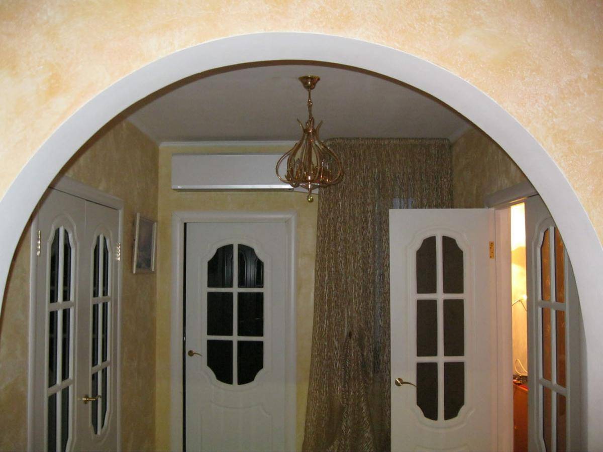 Повторимся: чем меньше арка и комната, тем меньше дизайна должно быть. Но если размеры позволяют, то можно прибегнуть к одному из следующих видов «украшательств».