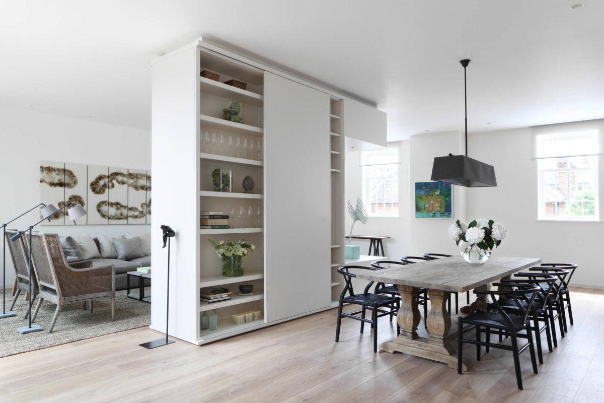 5) Раздвижная дверь или складная дверь в помещении, где кухня и гостиная вместе