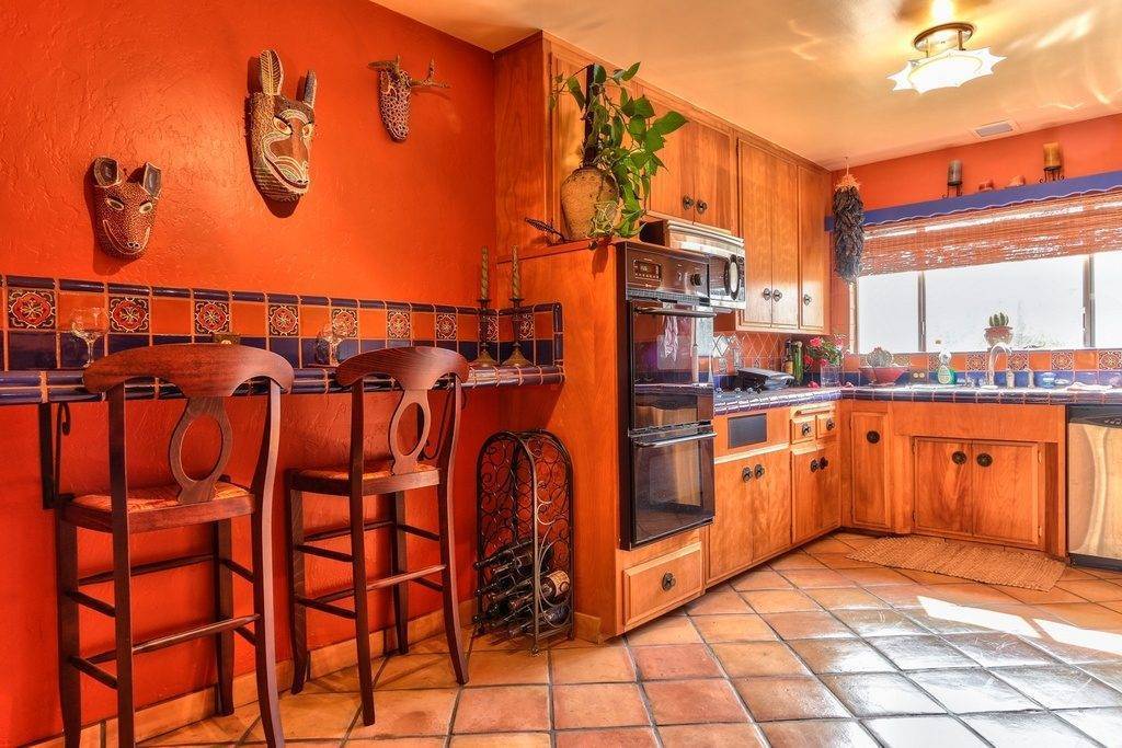 Например, сплошные стены, красочные узоры обоев с деталями, кухонные шкафы, шторы или абажуры, банки для хранения и произведения искусства, посуда и полы-это выбор, который позволяет привнести красивый и оптимистичный оранжевый цвет в современный дизайн и оформление кухни.