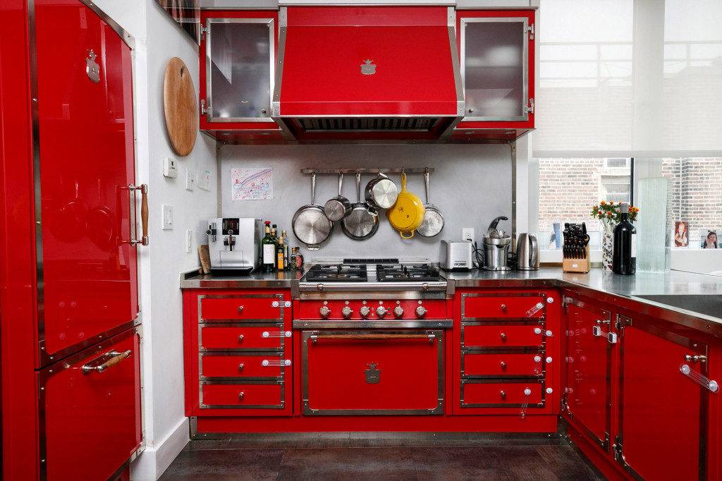 Достаточно интересное решение, когда обои для красной кухни розового цвета. В этом случае они добавляют пространства для размещения яркого акцента, и отлично гармонируют с предметами мебели. Выбирать обои для красной кухни можно и из другой цветовой гаммы, но лучше всего использовать светлые оттенки популярных цветов, в таком интерьере будет и акцент и фон.