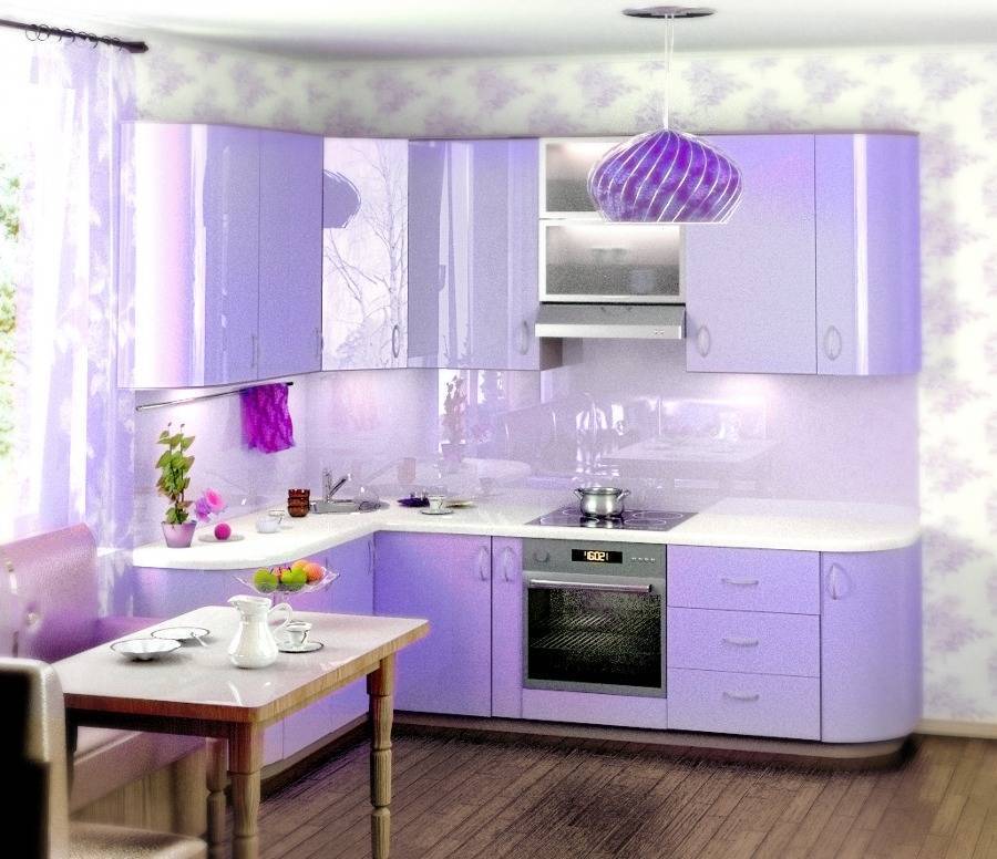 Обустройство интерьера маленькой кухни в фиолетовых тонах