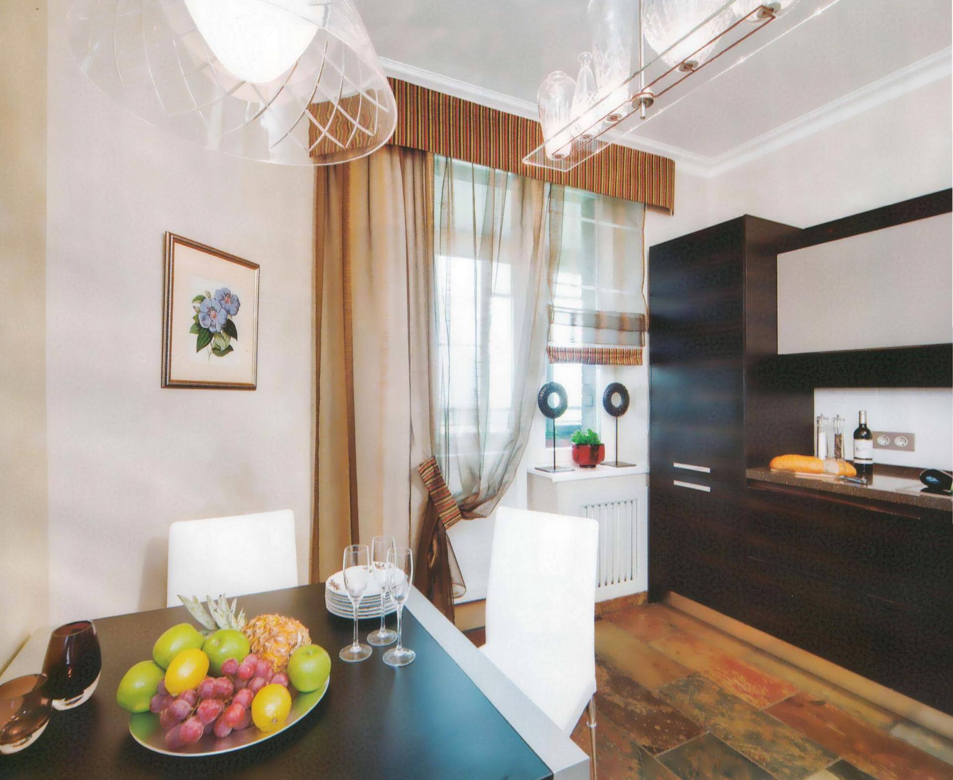 Как подобрать шторы на кухню? Нужно соотнести с размером помещения.