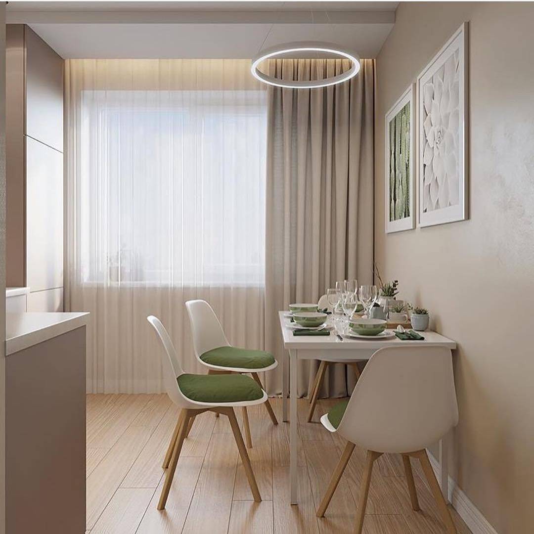 Если кухня небольшого размера и не обладает высокими потолками, то шторы не должны касаться пола, так как это визуально уменьшит высоту потолков. Необходимо, чтобы они были до подоконника или чуть ниже.
