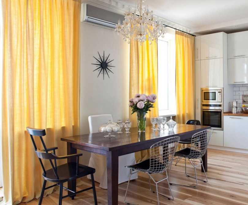 - Занавеси будут выглядеть лучше и естественней, если их длина будет до подоконника;