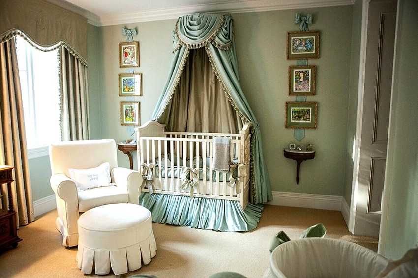 Балдахин над детской кроватью также играет важную роль,