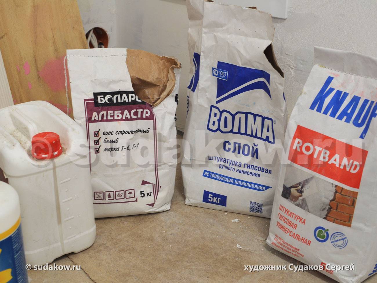 - В отдельной емкости готовится смесь консистенции йогурта из гипса, алебастра, штукатурки и ПВА.