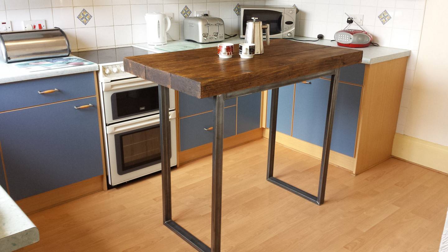 - ширина может быть любой, но менее 30 см ее делать не стоит, иначе даже средняя тарелка может легко упасть, да и трапезничать будет совершенно неудобно. Для того, чтобы обедать было максимально комфортно, ширина стойки должна быть 80 см, но практика подсказывает, что и 50-60 см бывает достаточно;