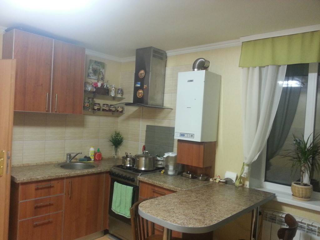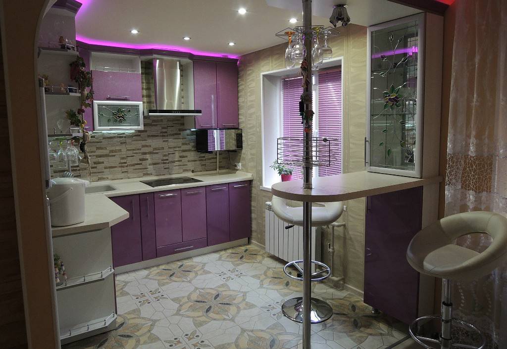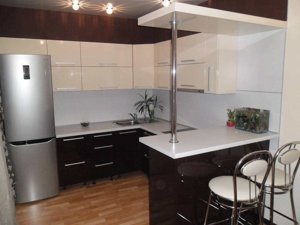 Фото 5. Пример совмещенной барной стойки в интерьере небольшой кухни.