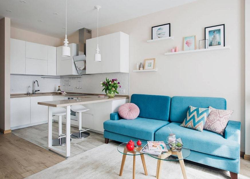 Маленькая кухня-гостиная с барной стойкой